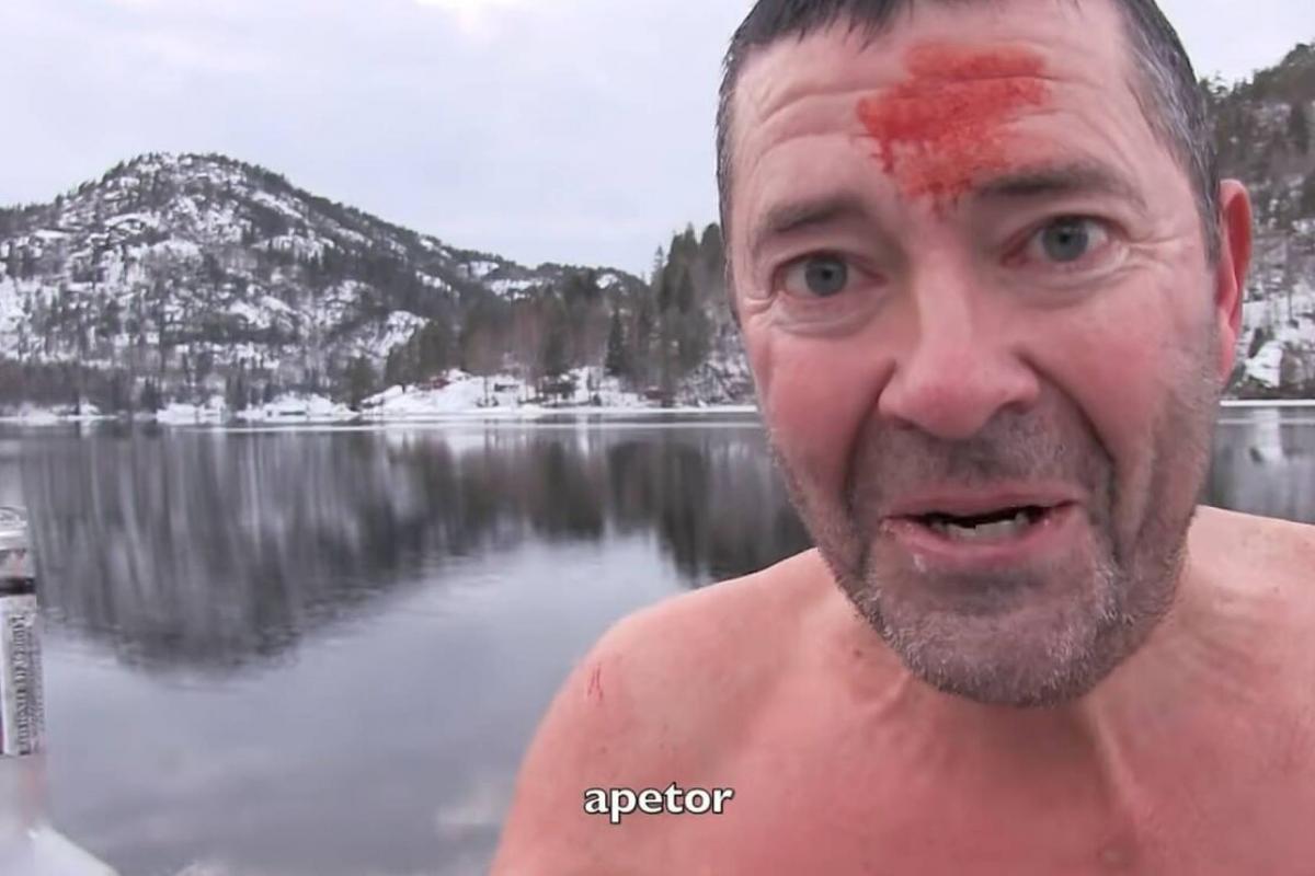 Eckhoff, de 57 años, se dirigió a este lago para grabar uno de los vídeos extremos en los que solía nadar en ropa interior en aguas heladas y beber vodka ruso.