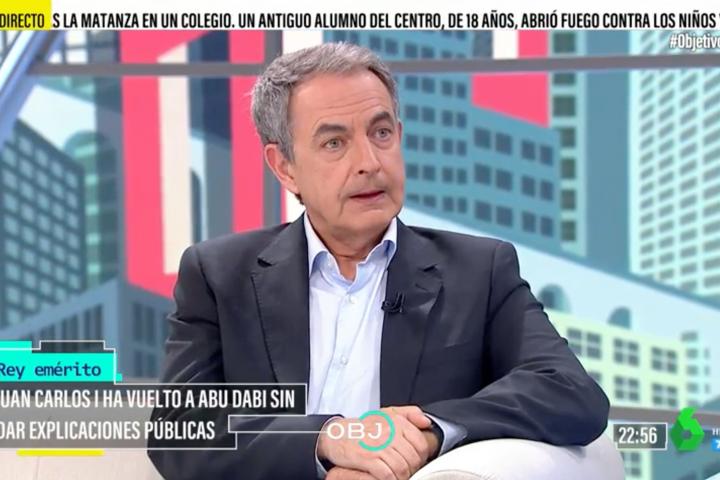 El expresidente del Gobierno, José Luis Rodríguez Zapatero, ha sido entrevistado este miércoles por la periodista Ana Pastor en el programa El Objetivo, donde ha hablado de uno de los temas más comentados de la última semana: la llegada del rey emérito a España.