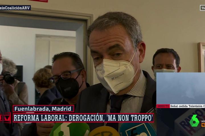 Los periodistas le han preguntado al expresidente por el acuerdo para la derogación de la reforma laboral. “No me sorprende. Las raíces del Gobierno de coalición son fuertes en llevar adelante un Gobierno progresista y, sin duda alguna, es una de las reformas más importantes”, ha señalado Zapatero a los medios en un acto en Fuenlabrada.