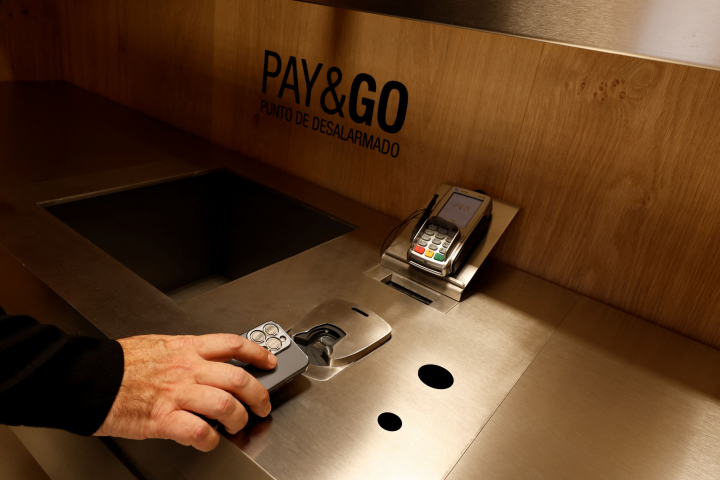 Zara ha implantado en este establecimiento el sistema Pay&Go, que permite retirar la alarma y pagar la prenda o accesorio sin hablar con nadie, aunque si el cliente lo prefiere, puede preguntar a una de las 200 personas que trabajan en la megalítica tienda.
