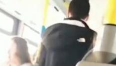 ″¡Zorras! ¡Chupapollas!”, dice el hombre, que llega a levantarse para encararse con las chicas cuando éstas deciden defenderse y le dicen que aprenda “a respetar”.