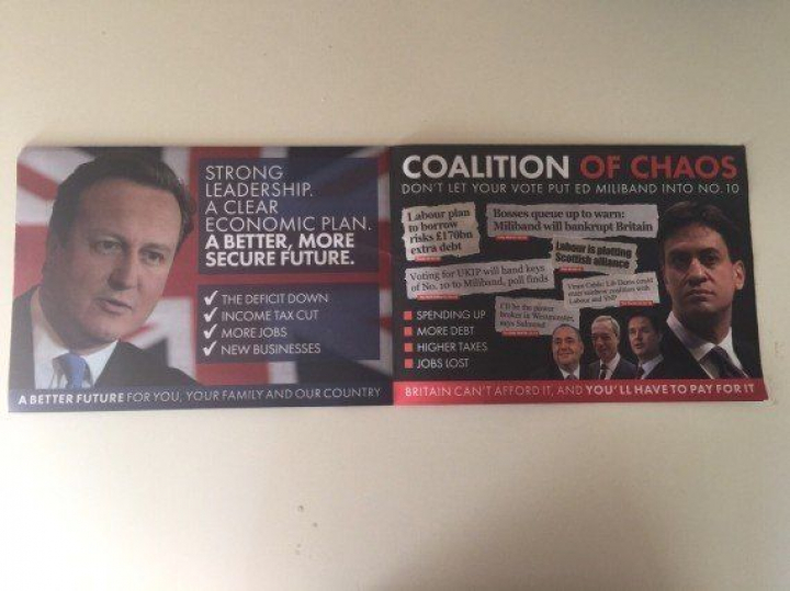 Observen ahora este folleto y cambien a Cameron por Rajoy y a Miliband por Sánchez. A un lado, se presenta un plan económico claro, un fuerte liderazgo y un futuro mejor y más seguro (menos déficit, menos impuestos, más empleos y nuevos negocios). Al otro, más deuda, más impuestos, más gasto y menos empleos. Idéntica estrategia a la que el PP ya emplea con los socialistas en otro de sus documentos internos: "donde se destruía empleo, hoy se crean más de un millón de puestos de trabajo; donde se cerraban empresas, hoy se abren; donde se congelaban pensiones, hoy se suben; donde había despilfarro, hoy se ahorra; donde se nos abocaba al rescate, hoy crecemos..."