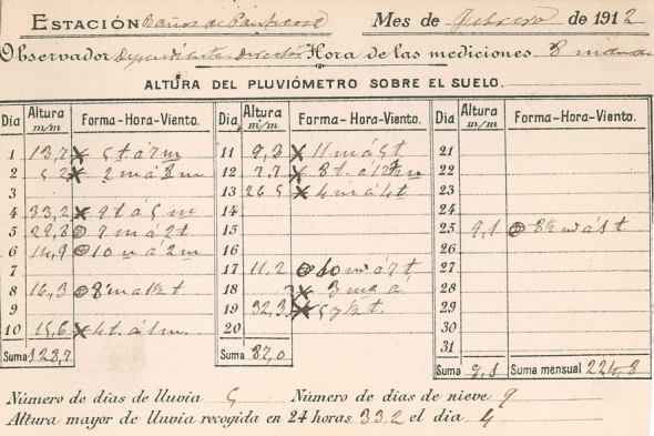 Tarjeta de anotación del Observatorio de los Baños de Panticosa. Fuente: AEMET