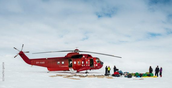 De hecho, cuando logramos alcanzar una buena velocidad, con Miguel y Malik a los mandos de la cometa, su grito de "grietas" fue una sorpresa que jugaba entre las posibilidades que teníamos en el horizonte, pero que esperábamos no encontrar. Inmediatamente frenamos. Afortunadamente estábamos ya a una distancia que hacía posible la entrada de un helicóptero desde la localidad de Ilulissat para sacarnos del hielo, como así fue.