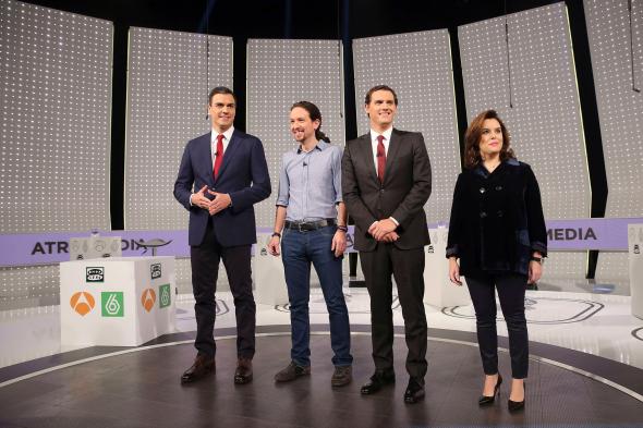 Pues bien, en un mundo -del que por cierto también forma parte España- en el que se están dando este tipo de realidades, los debates televisivos con las fuerzas políticas que aspiran a liderar nuestro país tras las próximas elecciones no dedican ni un solo minuto a estos temas ni a ninguno que tenga que ver con política exterior, de defensa, de seguridad, de cooperación o acción humanitaria. Nada de nada. O peor aún, cuando se sugiere algún tema relacionado con acción exterior o defensa, se parte de premisas que sesgan el debate. En el reciente debate de cuatro candidatos en las cadenas del grupo Atresmedia, la última pregunta -la última, claro- era sobre si las diversas fuerzas políticas enviarían tropas terrestres a Siria o Irak, dando por hecho que con la llamada guerra contra Daesh, todos los candidatos estaban de acuerdo. En el debate a dos entre Pablo Iglesias y Albert Rivera en el programa Salvados de la Sexta, ni eso. Ni una sola alusión a temas internacionales. Como diría Mariano Rajoy, ¿y en Europa?