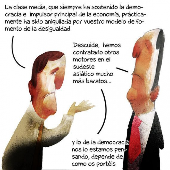Desigualdad sistémica Gabriel Sanz 19/09/2016 a las 05:12 Actualizado el 19/09/2016 a las 05:13 Comment COMENTAR> Facebook Twitter Whatsapp Email 5c8b5b9e3b000072066d6216 Gabriel Sanz Economía Política sociedad humor viñetas desigualdad humor gráfico clases sociales El HuffPost para Bodegas Avelino Vegas Avelino Vegas propone tres maridajes para estas navidades de la mano de los hermanos Torres Newsletter Recibe las notificaciones más importantes en tu correoapúntate a nuestro boletín Últimas noticias Una española se va a Finlandia a trabajar como elfo y avisa del inesperado requisito que le pidieron: "No es tan fácil y es indispensable" Antón Losada utiliza una "expresión técnica" de Galicia para definir la salida de Eurovisión, pero es tan claro que lo entenderán en toda España Desconcierto de estos mercenarios en Rusia: "No teníamos idea de que nos enviaban a la guerra" La extraña sensación de mareo tras un terremoto como el de Fuengirola tiene una explicación científica: un otoneurólogo aclara que es el mismo efecto que sufren los marineros al pisar tierra El primer posado oficial como pareja de Katy Perry y Justin Trudeau: su inesperado plan con la cantante al estilo primera dama Silvia Intxaurrondo pone sobre la mesa lo que pasa con Israel en Eurovisión y ojo porque dará que hablar Netflix comprará Warner Bros. Discovery, incluyendo HBO Max, por 82.700 millones de dólares La "superarma" nuclear con la que Rusia quiere asustar al mundo se anota un nuevo fracaso a la lista El respetado antropólogo británico Jason Hickel es muy claro al hablar de la decisión de España sobre Eurovisión Los mensajes de WhatsApp de Pradas con Mazón y su jefe de Gabinete: desde el "cojonudo" al "de confinar nada, por favor"