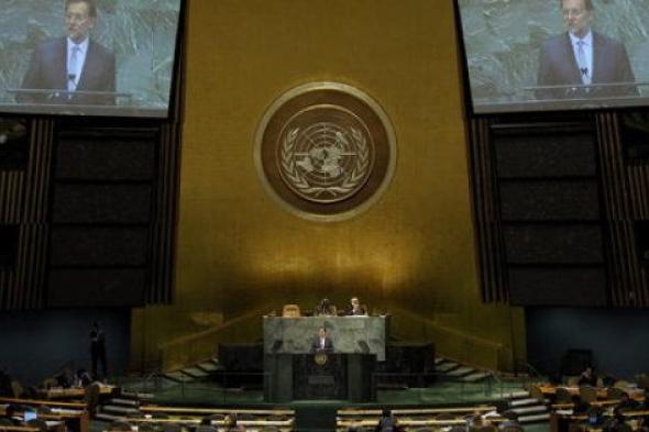 Mariano Rajoy interviene durante la Asamblea 67 de las Naciones Unidas en Nueva York, el martes 26 de septiembre. JUSTIN LANE / EFE