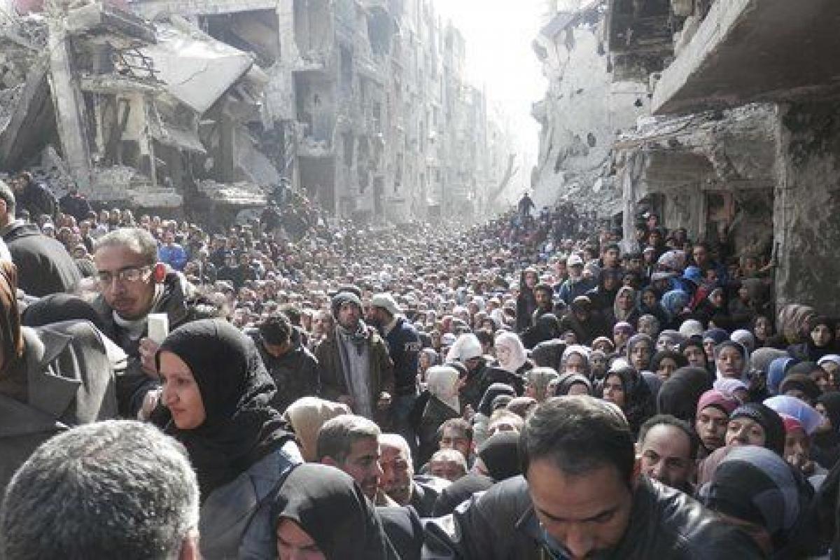 Casi 12 millones de personas necesitan de la ayuda humanitaria para sobrevivir, cerca de 70% de la población no tiene acceso a agua potable, una de cada tres personas no puede satisfacer sus necesidades alimentarias básicas, más de dos millones de niños no van al colegio y una de cada cinco personas vive en la pobreza. Siria nos ha dado escenas como las colas del hambre en Yarmouk, donde los palestinos refugiados en el campo ingerían carne de gato o hierbas no comestibles.