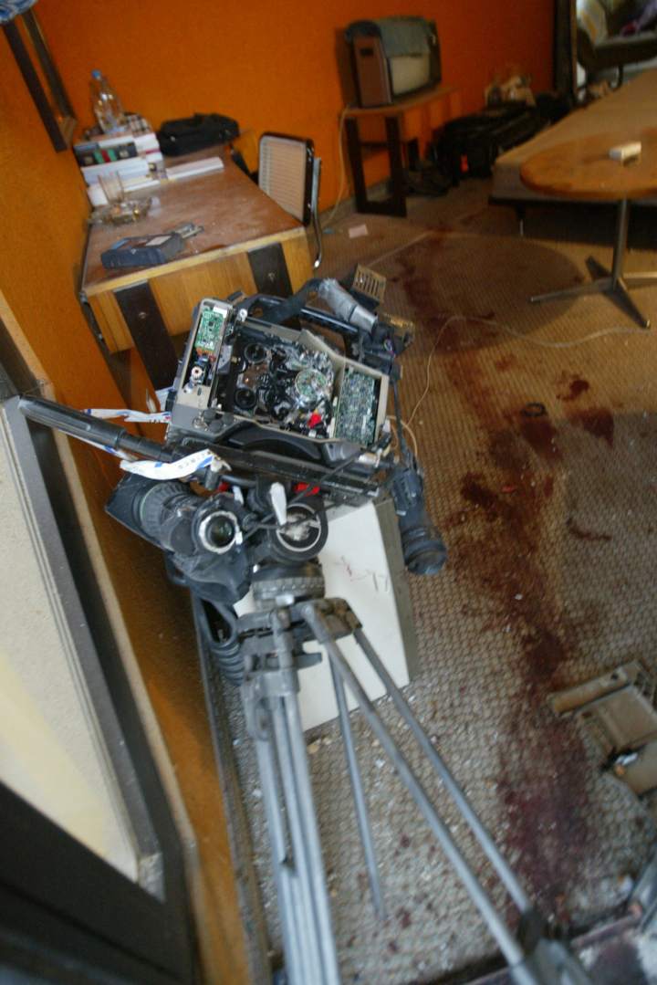 Disparó el sargento Shaw Gibson, último eslabón de una cadena de mando completada por el capitán Philipe Wolford y el teniente coronel Philip De Camps. Gibson, el sargento que disparó, declaró a un medio belga que él vio a alguien con unos "grandes prismáticos" en un balcón. "Yo no vi cámaras, me parecieron prismáticos (...) No sabía que había periodistas". La confusión también es difícil de entender, por cuanto la mira de su carro de combate es de enorme precisión y es capaz de aportar una imagen nítida a esa distancia, suficiente para distinguir unos prismáticos de una cámara.
