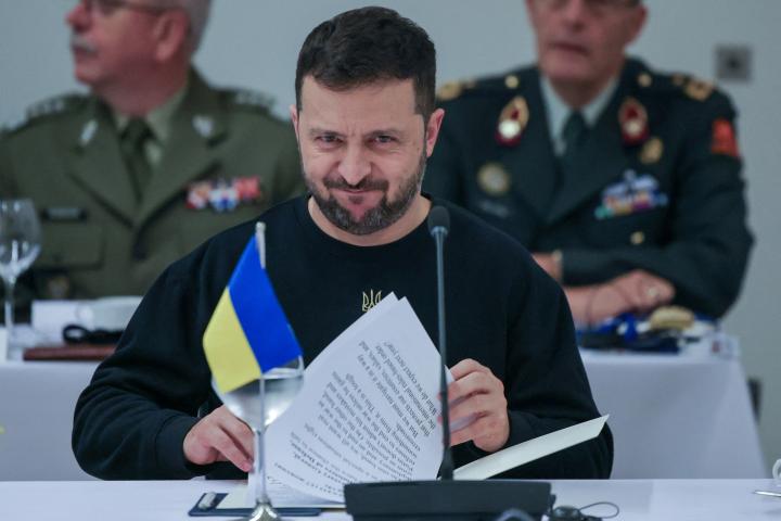 Volodimir Zelenski, presidente de Ucrania, el 17 de octubre de 2024, durante una reunión de trabajo OTAN-Ucrania en Bruselas.OLIVIER MATTHYS / Pool via REUTERS