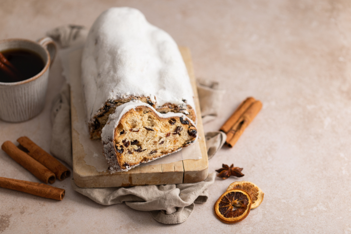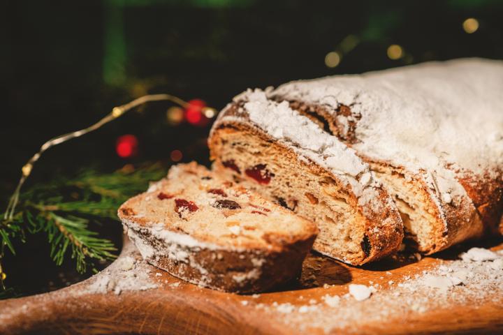 Se trata del stollen, un tipo de pan dulce que es típico en Navidad.