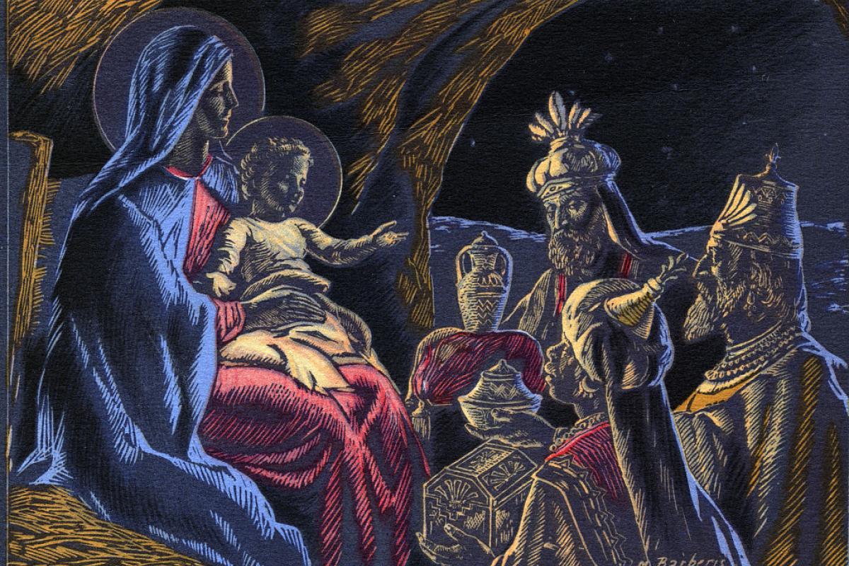 Herodes mandó llamar secretamente a los magos y después de averiguar con precisión la fecha en que había aparecido la estrella, los envió a Belén, diciéndoles: ‘Vayan e infórmense cuidadosamente acerca del niño, y cuando lo hayan encontrado, avísenme para que yo también vaya a rendirle homenaje’. Después de oír al rey, ellos partieron. La estrella que habían visto en Oriente los precedía, hasta que se detuvo en el lugar donde estaba el niño. Cuando vieron la estrella se llenaron de alegría, y al entrar en la casa, encontraron al niño con María, su madre, y postrándose, le rindieron homenaje. Luego, abriendo sus cofres, le ofrecieron dones: oro, incienso y mirra. Y como recibieron en sueños la advertencia de no regresar al palacio de Herodes, volvieron a su tierra por otro camino".