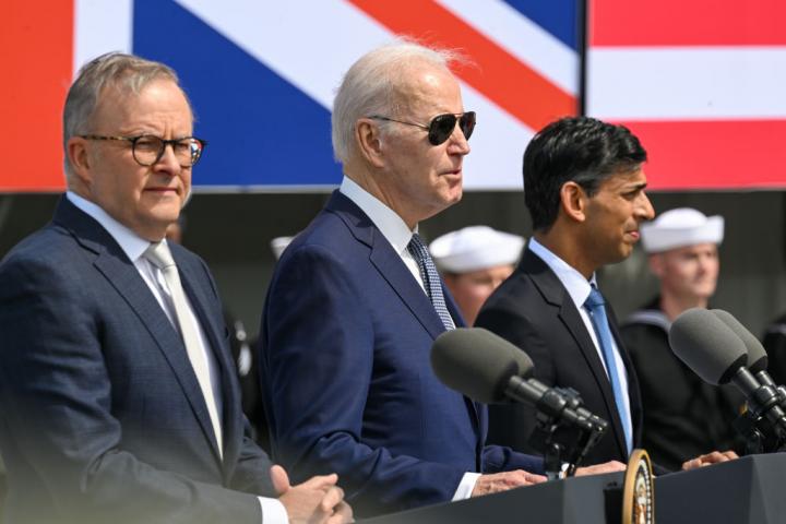 El presidente estadounidense, Joe Biden, se ha reunido en San Diego, California, con el primer ministro británico, Rishi Sunak, y el 'premier' australiano, Anthony Albanese, para anunciar este histórico acuerdo que incluye patrullas conjuntas de submarinos en el Pacífico.