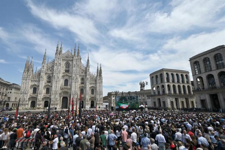 De hecho, miles de personas han acudido a la plaza del Duomo, frente a la emblemática catedral milanesa, para dar su último adiós a Silvio Berlusconi y seguir el acto desde pantallas gigantes. Sus restos han sido recibidos entre los aplausos de los allí reunidos, que han mostrado símbolos de recuerdo al difunto político y empresario, con alusiones a su partido, Forza Italia, y también al equipo de fútbol que presidía, el AC Milan.