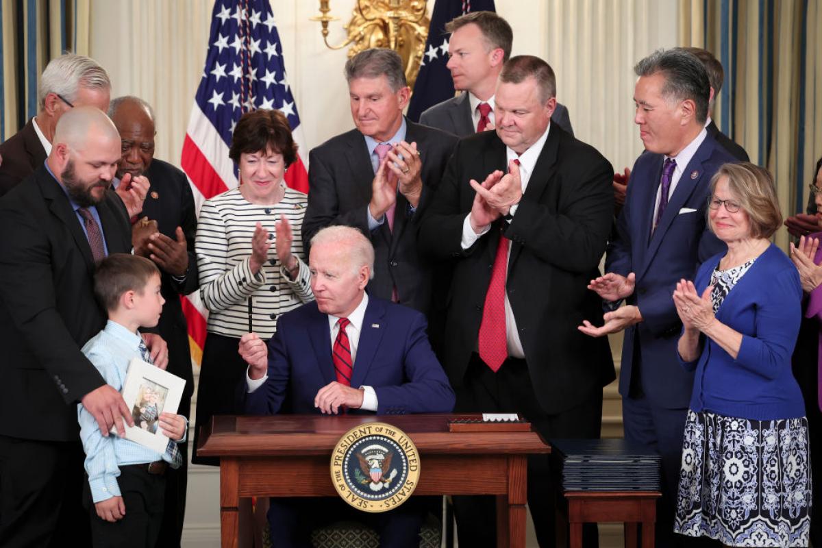 Fue en el verano de 2022 cuando presidente demócrata ha dio el mayor impulso a su legislación. Lo más importante fue la aprobación de la Ley de Reducción de la Inflación, un “hito”, como la llaman sus compañeros de partido, “una de las leyes más significativas de nuestra historia”, en palabras del presidente. En 15 días se desbloqueó con una negociación digna de House of cards. Contemplaba más de 400.000 millones de dólares en nuevas inversiones, casi todas centradas en dar un impulso a la industria de la energía verde y reducir las emisiones y supondrá la mayor inversión pública contra la crisis climática en la historia del país. Sus partidarios estimaron que servirá para reducir en un 40 % las emisiones contaminantes del país de aquí a 2030 respecto a los niveles de 2005.