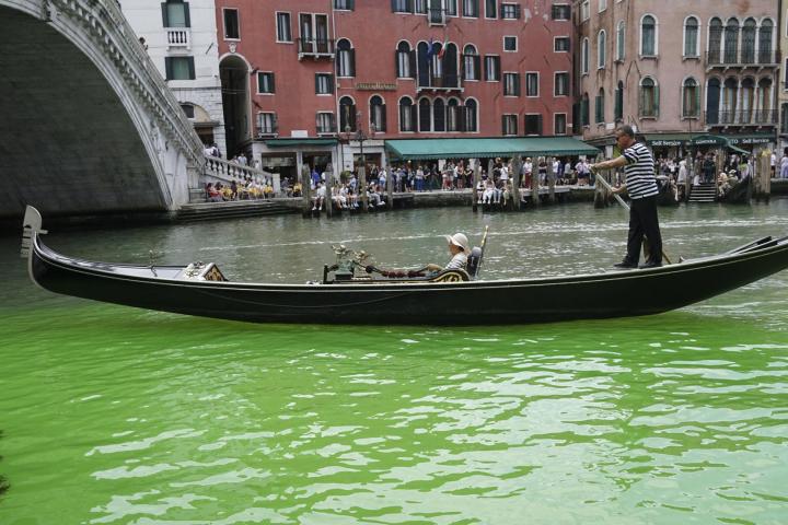Los canales de Venecia se tiñen misteriosamente de verde