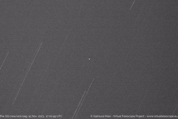 "La imagen de arriba proviene de una única exposición de 2 segundos", escribió el fundador del proyecto, Gianluca Masi, en un comunicado, junto a la imagen. "El objeto parece un punto de luz nítido en el centro; mientras el telescopio lo seguía, las estrellas dejaban largas estelas en el fondo".