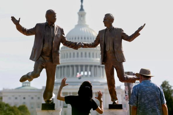 De la manita: una escultura satírica de Trump y Epstein aparece misteriosamente en el centro de Washington
