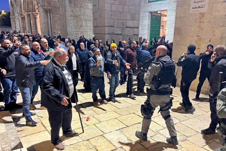 El Ejército israelí entró en la mezquita en la víspera tras asegurar que jóvenes enmascarados se atrincheraron dentro del efificio y lanzaron fuegos artificiales, garrotes y piedras, negándose a abandonar el recinto.