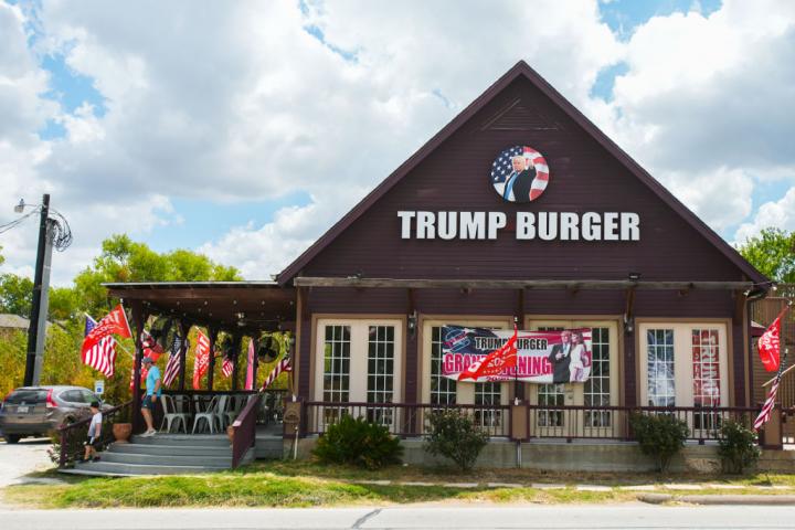En su establecimiento, hay opciones en el menú como la hamburguesa 'Trump Tower', un sándwich de pollo en honor a la primera dama, Melania Trump, y hasta una que se burla de Joe Biden