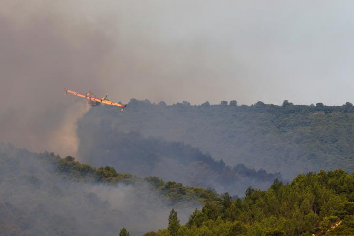 Recio ha señalado que los bomberos que combaten el fuego desde tierra cuentan con el respaldo aéreo de seis hidroaviones del tipo Canadair, tres aviones cisterna modelo Dash y tres helicópteros que están participando en las labores de extinción.