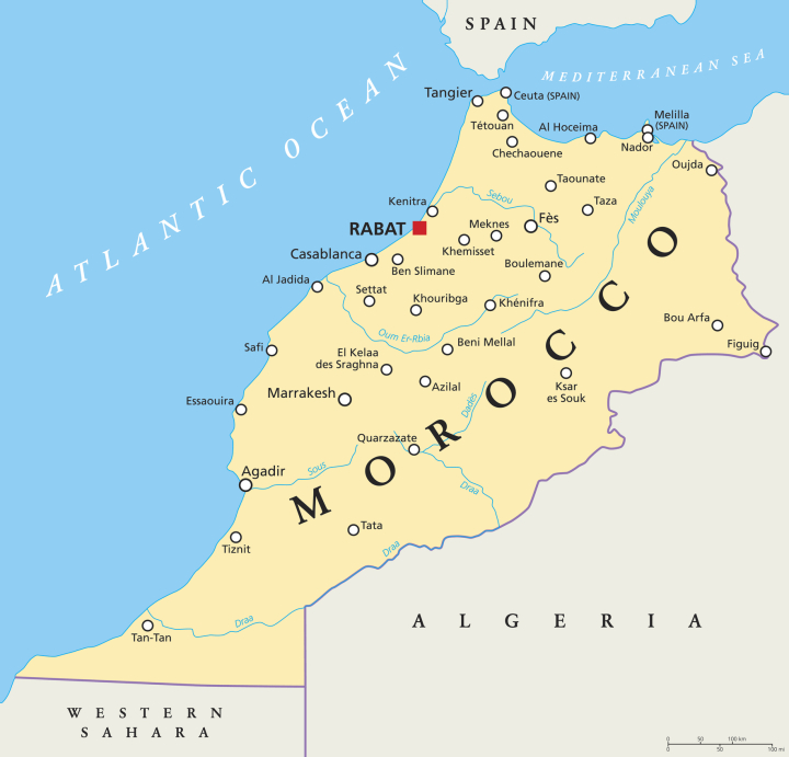 Se incluye el territorio del Sáhara Occidental, antigua colonia española y territorio históricamente disputado con Argelia.