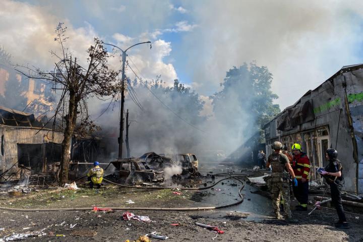 El 6 de septiembre, un misil balístico cayó en un concurrido mercado de la ciudad de Kostjantynivka, a unos treinta kilómetros de Bajmut.