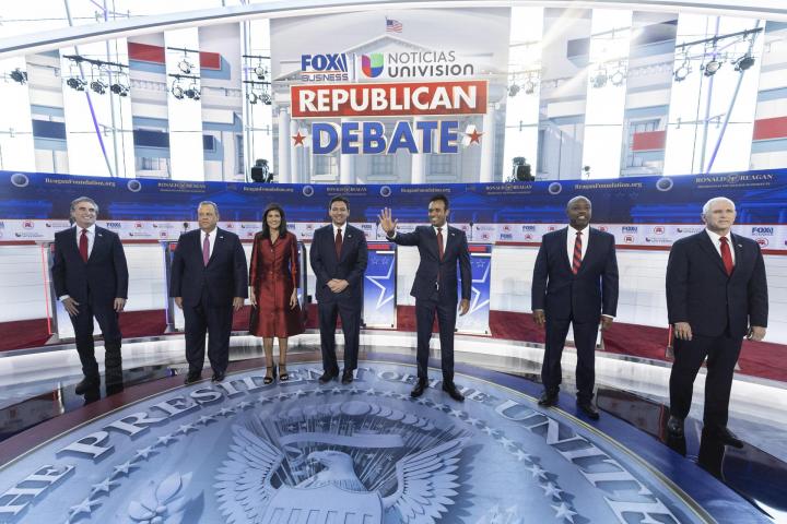 Este segundo debate republicano reunió al exvicepresidente de EEUU Mike Pence; al gobernador de Florida, Ron DeSantis; al empresario Vivek Ramaswamy; a la exgobernadora de Carolina del Sur Nikki Haley; al exgobernador de Nueva Jersey Chris Christie; al senador de Carolina del Sur Tim Scott; y al gobernador de Dakota del Norte, Doug Burgum.
