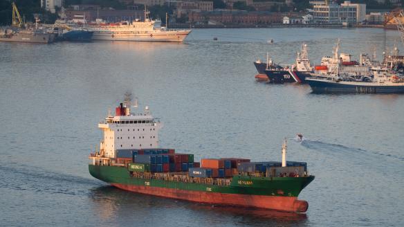 Una vista desde el puerto comercial marítimo de Vladivostok, el puerto universal más grande de toda la región del Lejano Oriente con una facturación anual de carga de más de 12,9 millones de toneladas en Vladivostok, Rusia, el 8 de agosto de 2024.