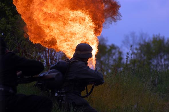 En las imágenes, se ve a algunos soldados usando el lanzallamas. Un arma que los informes apuntan a que se puede disparar dos veces y que cada vez que ocurre se expulsa un tanque lleno de gasolina.