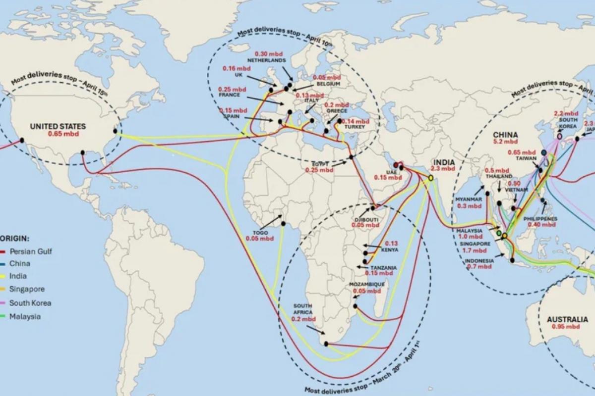 Este mapa de JPMorgan revela cuándo dejarán de llegar los últimos barriles de Oriente Medio a Europa: "Es una bomba de relojería"