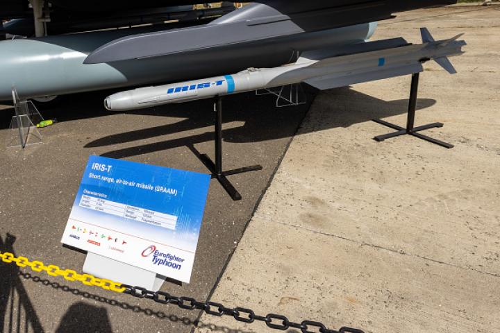 El IRIS-T, fabricado por la empresa alemana Diehl, es un misil de última generación con un sistema de guiado por imagen infrarroja (IR). Con un peso de 87,4 kg, está diseñado para interceptar objetivos de alta maniobrabilidad, como aviones de caza, misiles de crucero y vehículos no tripulados (UAV), lo que lo convierte en una herramienta esencial en el combate aéreo.