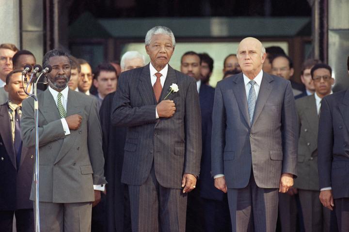 Un año antes, Mandela y su gente habían empezado a negociar con el entonces presidente, Frederik de Klerk, que más tarde recibiría el Nobel junto al líder negro. De su diálogo, además de la liberación de Mandela, surgiría el fin del apartheid y la convocatoria de elecciones libres e iguales en 1994. Su partido ganó por mayoría absoluta, bajo el lema: "Mandela, la elección del pueblo". "El día de la votación, observad bien vuestra papeleta y votad al apuesto joven que aparezca", había sido su consejo a los ciudadanos.