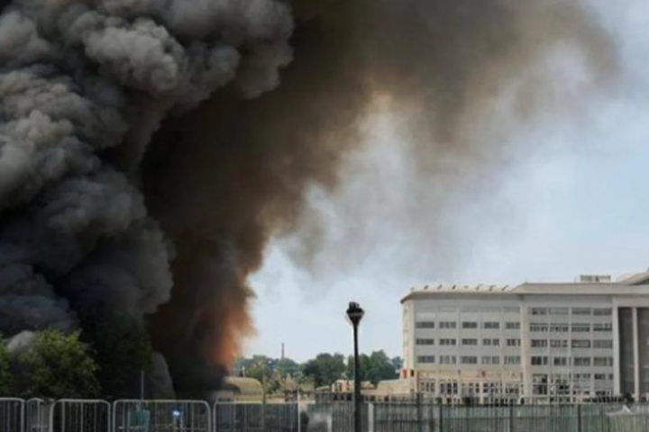 La imagen (generada con Inteligencia Artificial) de la deflagración fue difundida por redes sociales y medios vinculados a Rusia.