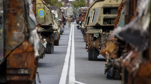 Para la ocasión y al ser una fecha tan especial -30º año de independencia-, las calles de la capital han sido pobladas con los tanques rusos capturados por las tropas ucranianas durante el más de año y medio de invasión de Rusia.