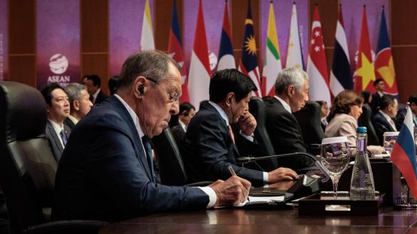 El ministro de Exteriores de Rusia, Serguéi Lavrov, alertó hoy en la cumbre de Asia Oriental de los riesgos de la militarización de la región del Sudeste Asiático ante la creciente presencia de la OTAN.