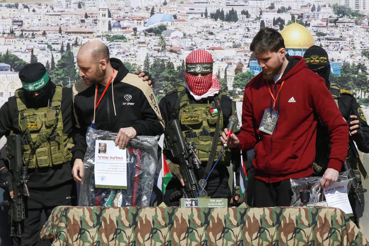 Los tres varones israelíes liberados este sábado son Iair Horn (con nacionalidad argentina), de 46 años, Sasha (Alexander) Trufanov (con nacionalidad rusa) de 29 y Sagui Dekel-Chen (también estadounidense), de 36 años. Todo el proceso ha tenido lugar después de que, como ya ocurriera la pasada semana, los liberados pronunciaran unas palabras ante las cámaras y custodiados por sus propios secuestradores.