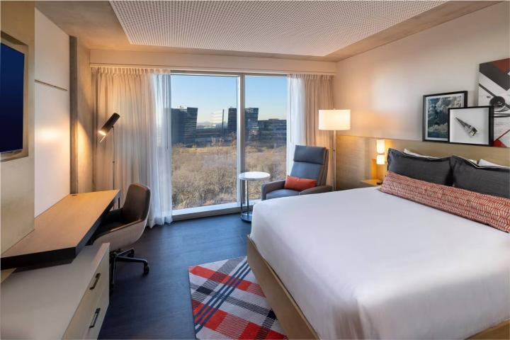 Eso sí, cada una de las plantas tiene su centro de reuniones y relax para los empleados. Las habitaciones son individuales y presentan un estilo moderno con avances tecnológicos, como el espejo con Bluetooth y música. Además, presenta detalles de la aeronáutica en cada habitación y tiene ‘escondidos’ detalles que puedes encontrar en sus aeronaves.