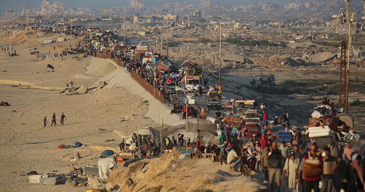 En un momento en el que, tras cuatro días de asedio total sobre la capital de la Franja, han logrado salir al menos 56.000 palestinos de los más de medio millón que se estimaba seguían en la urbe hasta el pasado fin de semana, todavía continúan los convoyes con interminables hileras de personas que se dirigen a la zona sureña que Tel Aviv ha designado como zona humanitaria.