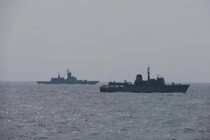La corbeta clase Steregushchiy escoltó posteriormente a los dos cargueros en dirección este, mientras el HMS Hurworth, con base en Portsmouth, vigilaba cada movimiento mientras el grupo ruso regresaba al mar Báltico como parte de los esfuerzos conjuntos de la OTAN .