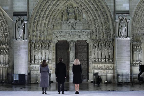 La de Macron ha sido una intervención breve y ha aprovechado para destacar el esfuerzo de quienes contribuyeron a salvarla de las llamas y de todos los que ayudaron después a reconstruirla. El fuego -ha explciado- ha puesto en evidencia que "nuestras catedrales son mortales" y que solo la "voluntad" y la "fraternidad" han permitido que sus campanas suenen de nuevo, y que la desaparecida aguja de Notre Dame vuelva a alzarse, recreada, hacia el cielo de París.