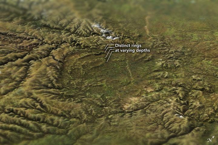 El cráter se encuentra en el borde noreste del escudo de Anabar, que contiene una mezcla de rocas grafíticas y sedimentarias. "El impacto del asteroide fundió 1750 kilómetros cúbicos de rocas y transformó instantáneamente las láminas de grafito en diamantes", según especifica la NASA. Estos se formaron en una capa hemisférica de aproximadamente 1,6 kilómetros de espesor y a unos 12 o 13 kilómetros del lugar del impacto. Los científicos estiman que los diamantes no se formaron en el lugar del impacto porque el calor y la presión de la colisión probablemente fueron demasiado altos para sobrevivir allí.