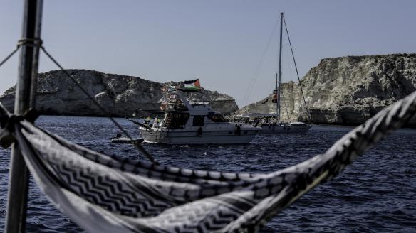 La tripulación de las docenas de barcos con material humanitario se prepara para la inminente interceptación.