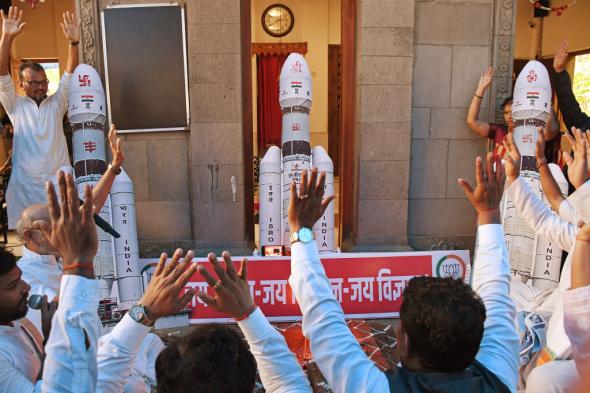 Para hacer historia, sin embargo, los científicos indios deberán atravesar un periodo de "veinte minutos del terror", según los medios indios, durante el último tramo del alunizaje, cuando Chandrayaan-3 deba adoptar una posición vertical y disminuir progresivamente su velocidad hasta posarse sobre el polo sur del satélite.