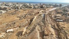 El pasado domingo las lluvias torrenciales provocadas por el ciclón Daniel arrasaron el noreste del territorio, especialmente en la localidad costera de Derna, donde provocaron el colapso de dos presas, vertiendo 33 millones de litros de agua durante la madrugada y arrastrando zonas residenciales enteras, puentes y carreteras hasta el mar.