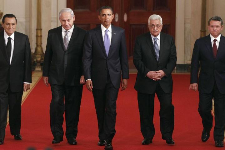 El momento era de relativo optimismo, todo el que cabe en un conflicto viejo de casi 80 años, ya que tenía lugar diez días después de que Obama diera un discurso de enorme relevancia en El Cairo, avalando esa salida, también. Parecía que algo se movía. Netanyahu, en su media hora de intervención, fue interrumpido varias veces por los aplausos, porque se entendía que estaba exponiendo una hoja de ruta con soluciones, factible.