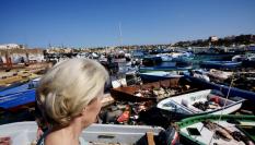 Lampedusa es una tierra contradictoria. Llamada a gestionar miles de llegadas cada año, todo transcurre disimuladamente, sin que los inmigrantes, encerrados en su único centro de acogida, interfieran con el "maná" de la isla: los turistas.