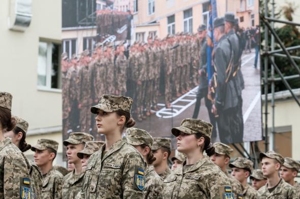 Mytsiuk relata que al presentarse para servir le dijeron que lo mejor sería que estuviera "en la cocina", donde podría hacer dumplings. Haciendo caso omiso, se matriculó en una universidad militar para obtener una segunda licenciatura y se graduó este verano.