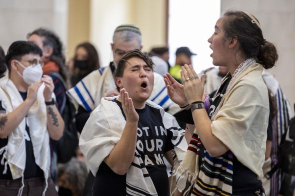 Se vio en la noche del miércoles en Washington, donde grupos de manifestantes, sobre todo judíos, accedieron al Capitolio y lo ocuparon temporalmente para rezar y reclamar el fin del "genocidio" en Gaza. Las organizaciones progresistas If not now y Jewish voice for Peace lideraban la marcha, con el Bella ciao de fondo. "Nos hemos reunido para que los miembros del Congreso no financien ni apoyen más bombas en Gaza y para que se solicite un alto el fuego y se permita que la ayuda humanitaria entre en Gaza para que los palestinos dejen de ser asesinados por los crímenes de guerra de Israel", dijo a la Agencia EFE Asher Firestone, representante de Jewish Voice for Peace.
