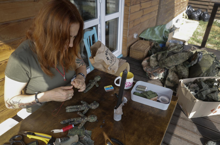 Desde el primer día de la invasión rusa él luchó en el ejército ucraniano. Ella tuvo que salir del país a Polonia con su hijo y mascotas, aunque finalmente regresaron y ahora residen cerca de Kiev, donde realiza estos muñecos.